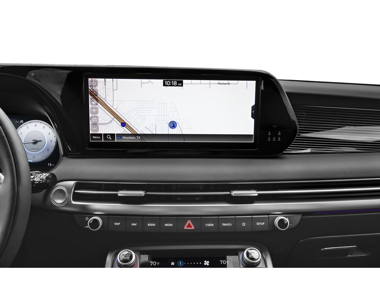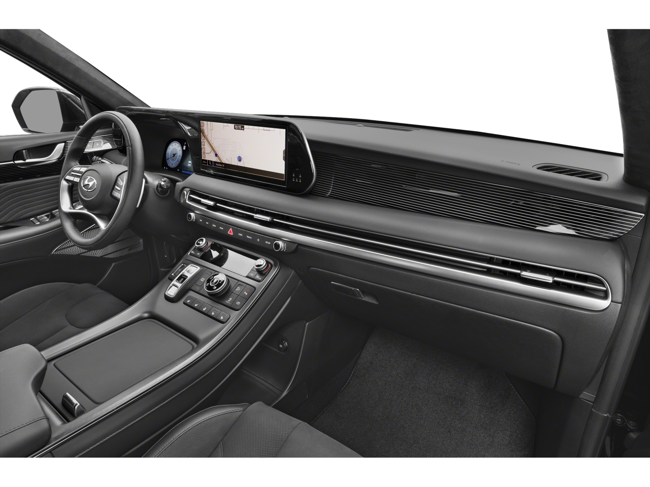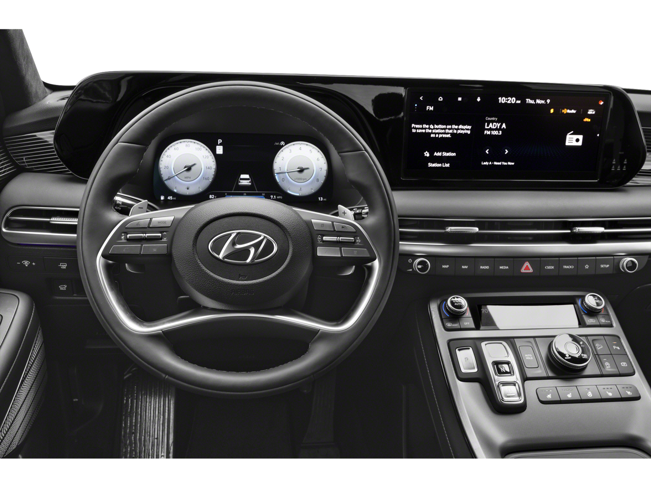 - Radio: AM/FM/MP3 Premium Audio System -inc: 630-Watts, Harman Kardon audio system w/12-speakers, Quantum Logic Surround, Clari-Fi music restoration technology, 12.3" color touchscreen display, onboard navigation w/traffic flow including incident data via HD Radio (HERE), Over-the-Air (OTA) map updates, SiriusXM, Android Auto and Apple CarPlay, rear seat quiet mode, passenger talk (in-car intercom), Wifi hotspot, Bluetooth® hands-free connectivity w/multiple device connection and wireless audio streaming, USB, dynamic voice recognition and Bluelink Connected Car System