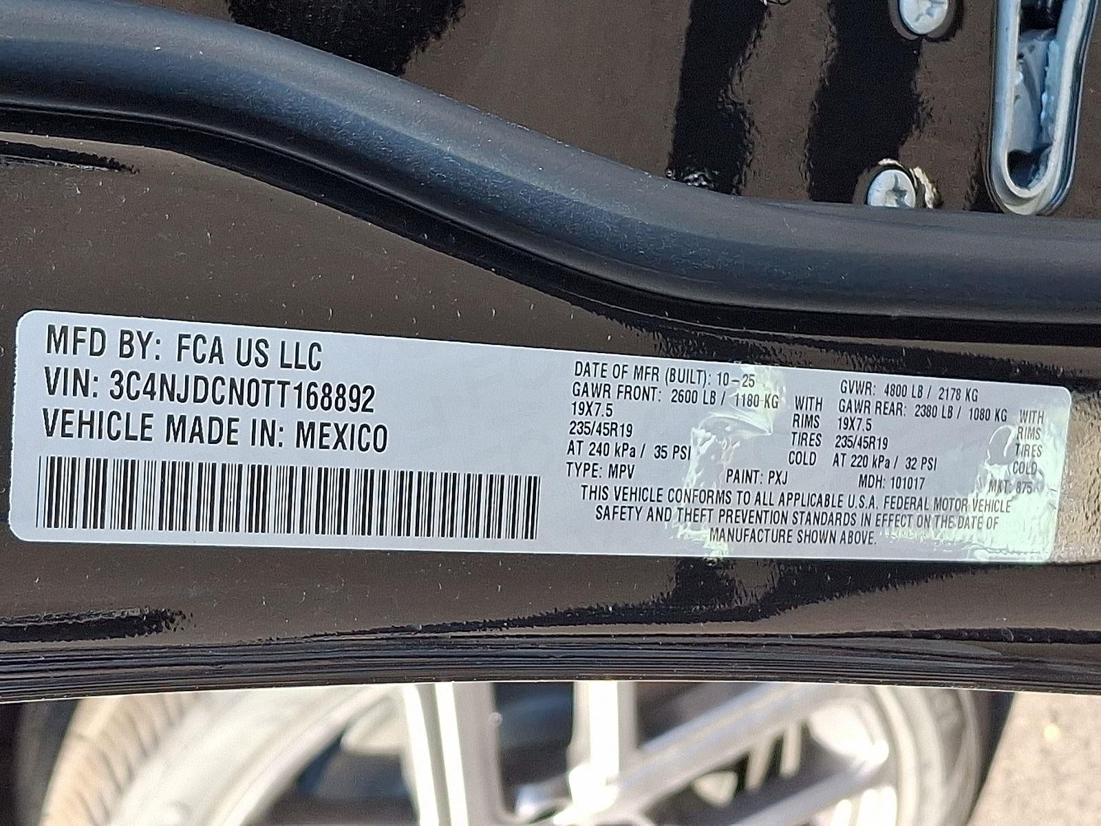 2.0L I4 DOHC DI TURBO ENGINE W/ESS, 8-SPEED AUTOMATIC 8F30 TRANSMISSION, QUICK ORDER PACKAGE 29W LIMITED ALTITUDE, MONOTONE PAINT APPLICATION, DIAMOND BLACK CRYSTAL PEARLCOAT, BLACK, LEATHERETTE SEATS, MOPAR ALL WEATHER PACKAGE, FRONT LICENSE PLATE BRACKET