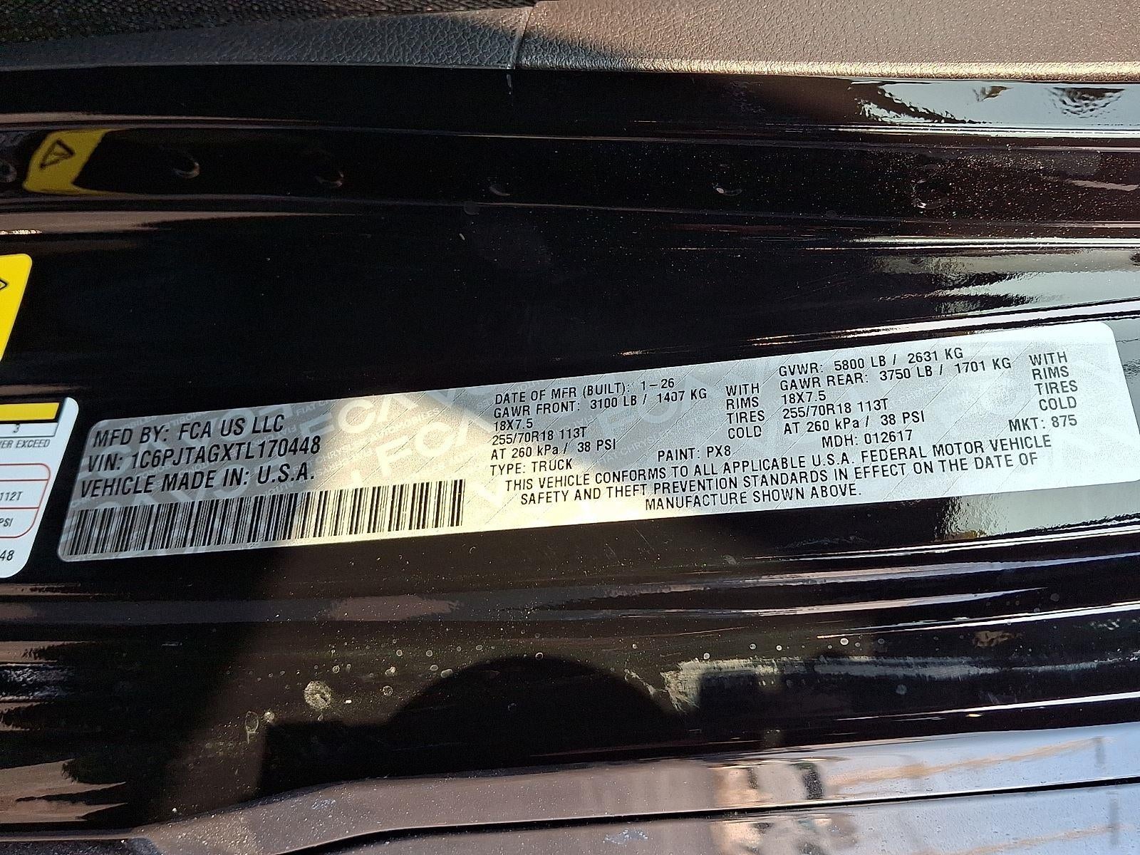 3.6L V6 24V VVT UPG I ENGINE W/ESS, 8-SPEED AUTOMATIC 850RE TRANSMISSION, QUICK ORDER PACKAGE 24H SAHARA, BLACK CLEARCOAT, BLACK, PREMIUM MCKINLEY TRIMMED SEATS, LED HEADLAMP & FOG LAMP GROUP, FRONT LICENSE PLATE BRACKET, MOPAR SPRAY IN BEDLINER, MOPAR ALL-WEATHER SLUSH MATS
