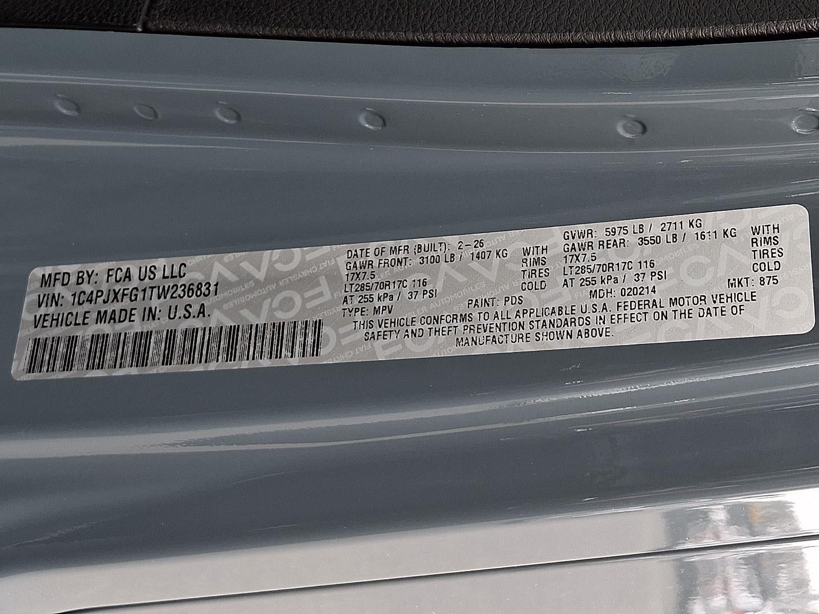 PERFORMANCE SUSPENSION, 3.6L V6 24V VVT UPG I ENGINE W/ESS, 8-SPEED AUTOMATIC 850RE TRANSMISSION, QUICK ORDER PACKAGE 24R RUBICON, 4.10 REAR AXLE RATIO, 17"" X 7.5"" MACHINED/PAINTED BLACK WHEELS, LT285/70R17C BSW OFF-ROAD TIRES, ANVIL CLEARCOAT, BLACK, NAPPA LEATHER SEATS, 5,975 LBS GVWR, CONVENIENCE GROUP, BODY COLOR 3-PIECE HARD TOP, BODY COLOR RUBICON HIGHLINE FLARE, FRONT LICENSE PLATE BRACKET, STEEL PERFORMANCE HOOD PACKAGE, JEEP TRAIL RATED KIT, MOPAR ALL-WEATHER FLOOR MATS