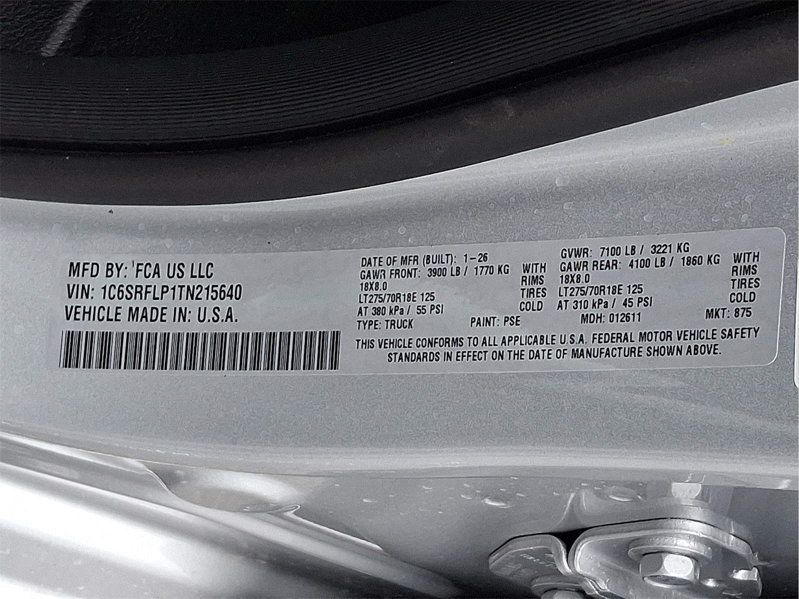 - Rear Tire Size: LT275/70RR18