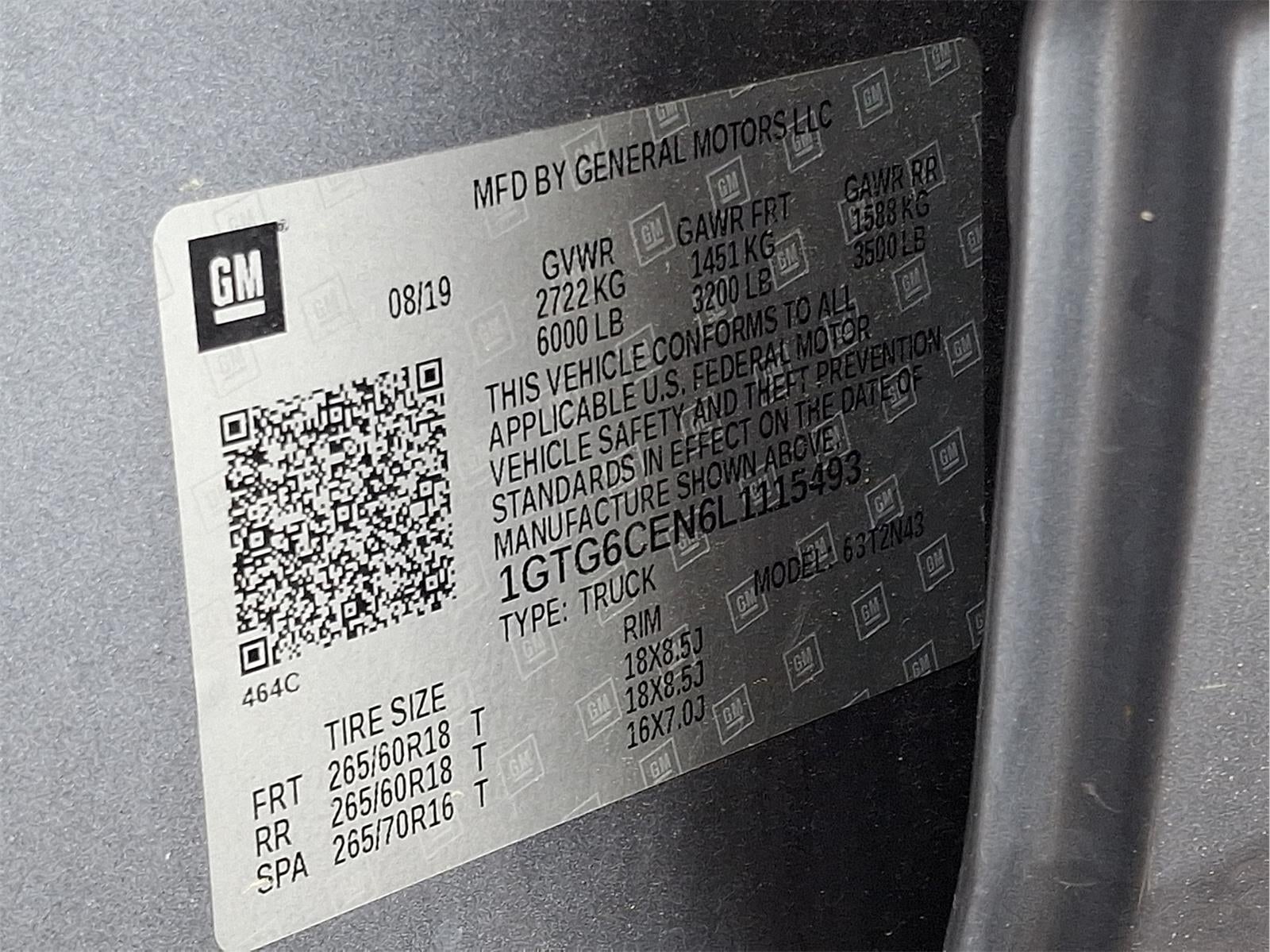 EMISSIONS, CONNECTICUT, DELAWARE, MAINE, MARYLAND, MASSACHUSETTS, NEW JERSEY, NEW YORK, OREGON, PENNSYLVANIA, RHODE ISLAND, VERMONT AND WASHINGTON STATE REQUIREMENTS, ENGINE, 3.6L DI DOHC V6 VVT, TRANSMISSION, 8-SPEED AUTOMATIC, GVWR, 6000 LBS. (2722 KG), REAR AXLE, 3.42 RATIO, WHEEL, 18"" X 8"" (45.7 CM X 20.3 CM) MULTI-SPOKE SATIN GRAPHITE PAINTED ALUMINUM, TIRES, 265/60R18 ALL-SEASON, BLACKWALL, SATIN STEEL METALLIC, SEATS, FRONT BUCKET, JET BLACK, CLOTH SEAT TRIM, AUDIO SYSTEM, 8"" DIAGONAL GMC INFOTAINMENT SYSTEM, ELEVATION EDITION, SLE CONVENIENCE PACKAGE, TRAILERING PACKAGE, WINDOW, REAR-SLIDING, MANUAL, LPO, ALL-WEATHER FLOOR MATS, REMOTE VEHICLE STARTER SYSTEM, AIR CONDITIONING, SINGLE-ZONE AUTOMATIC CLIMATE CONTROL